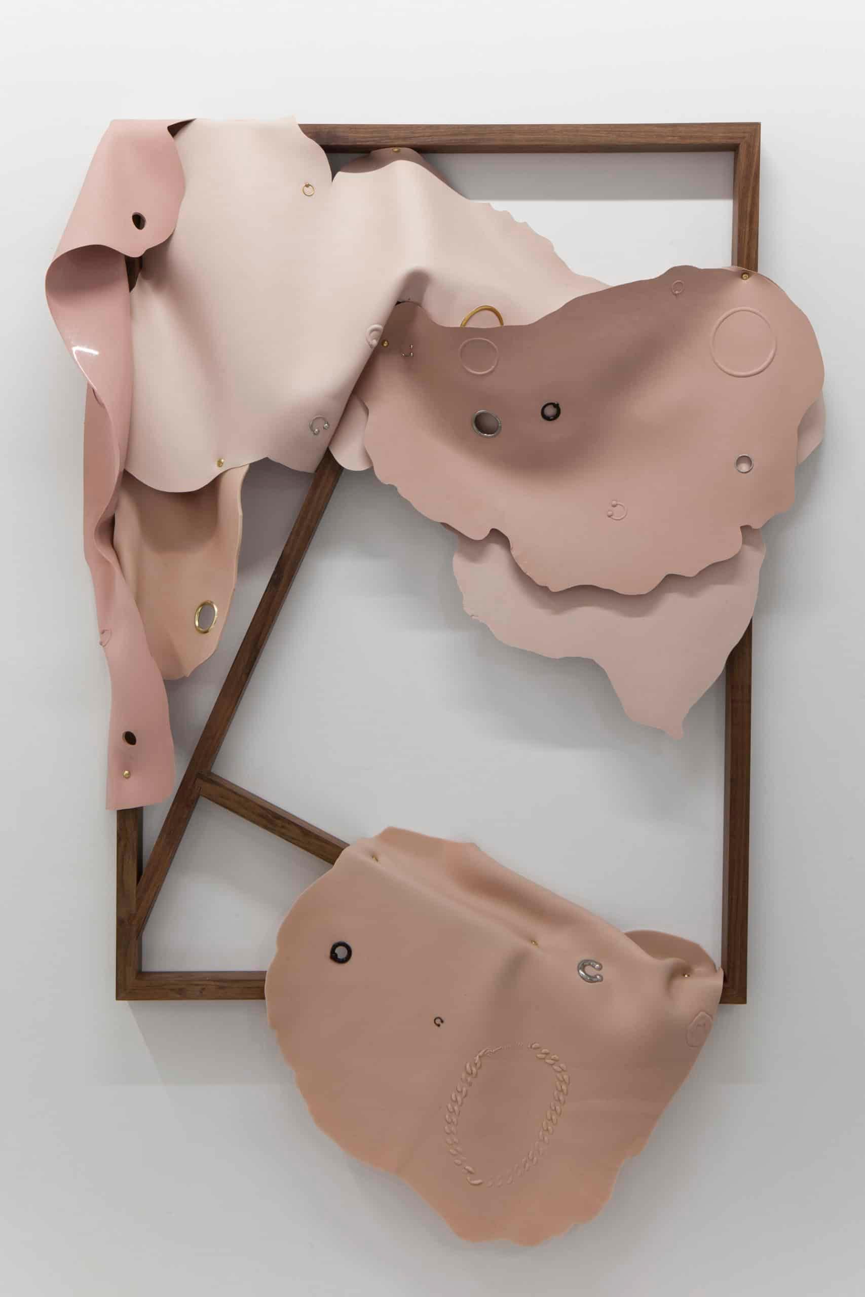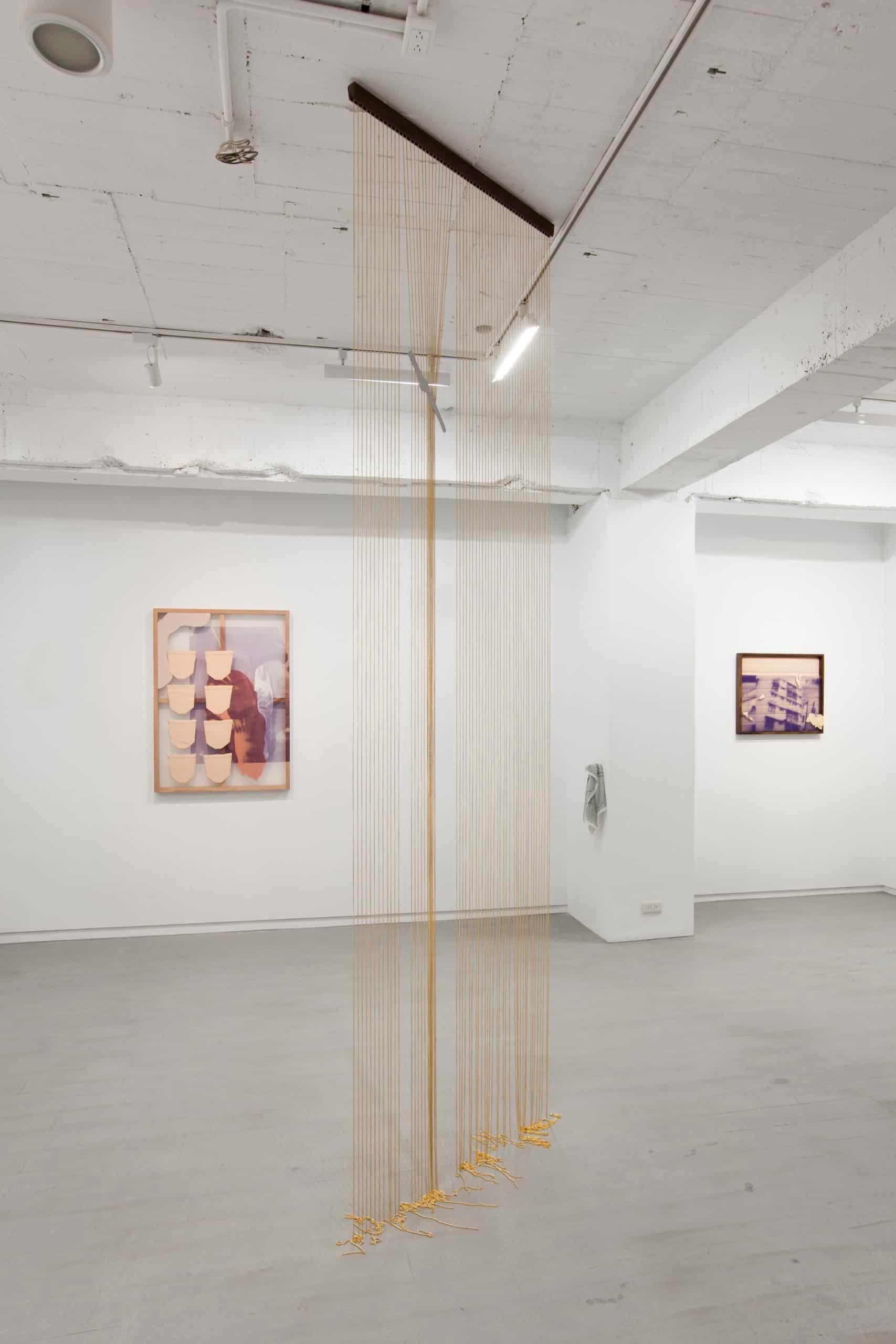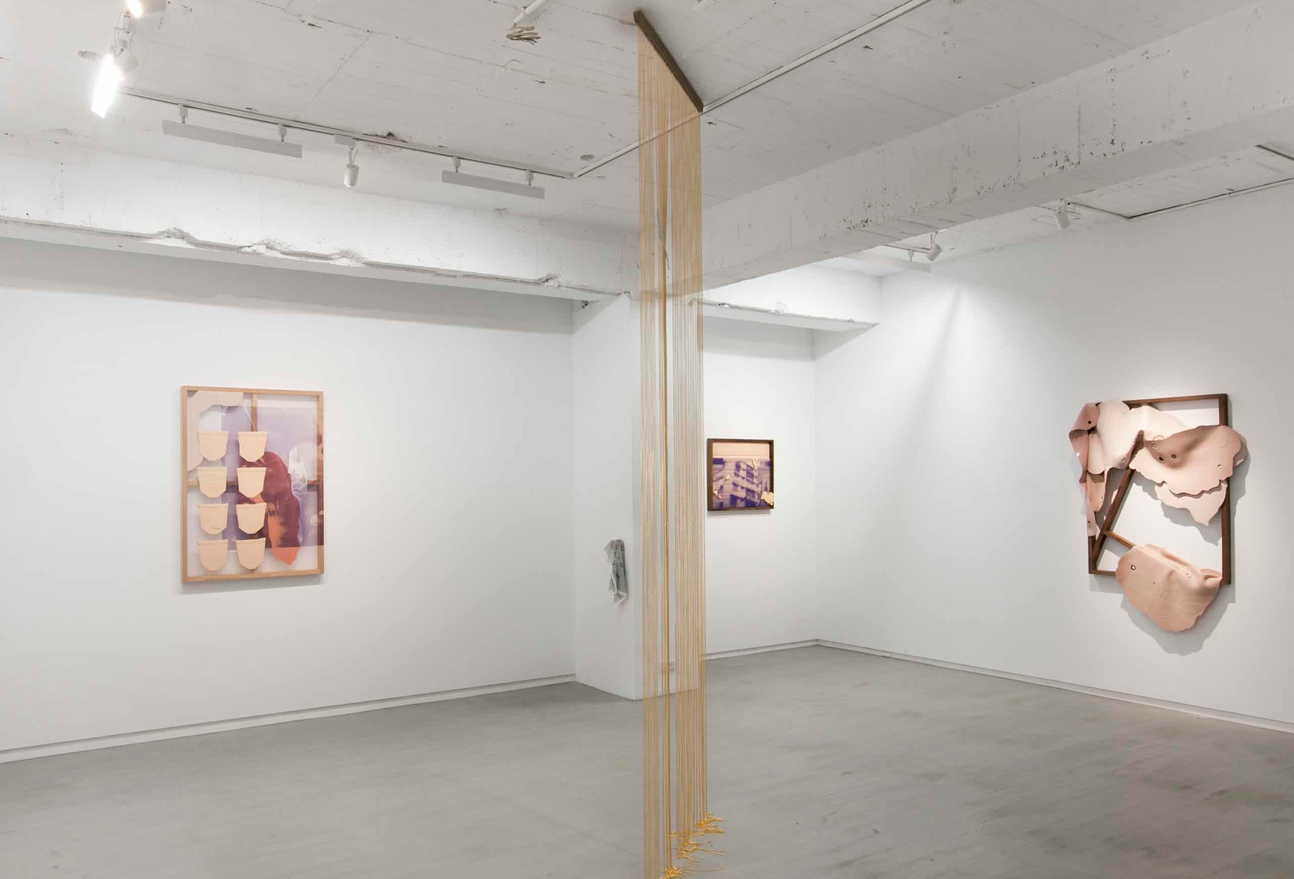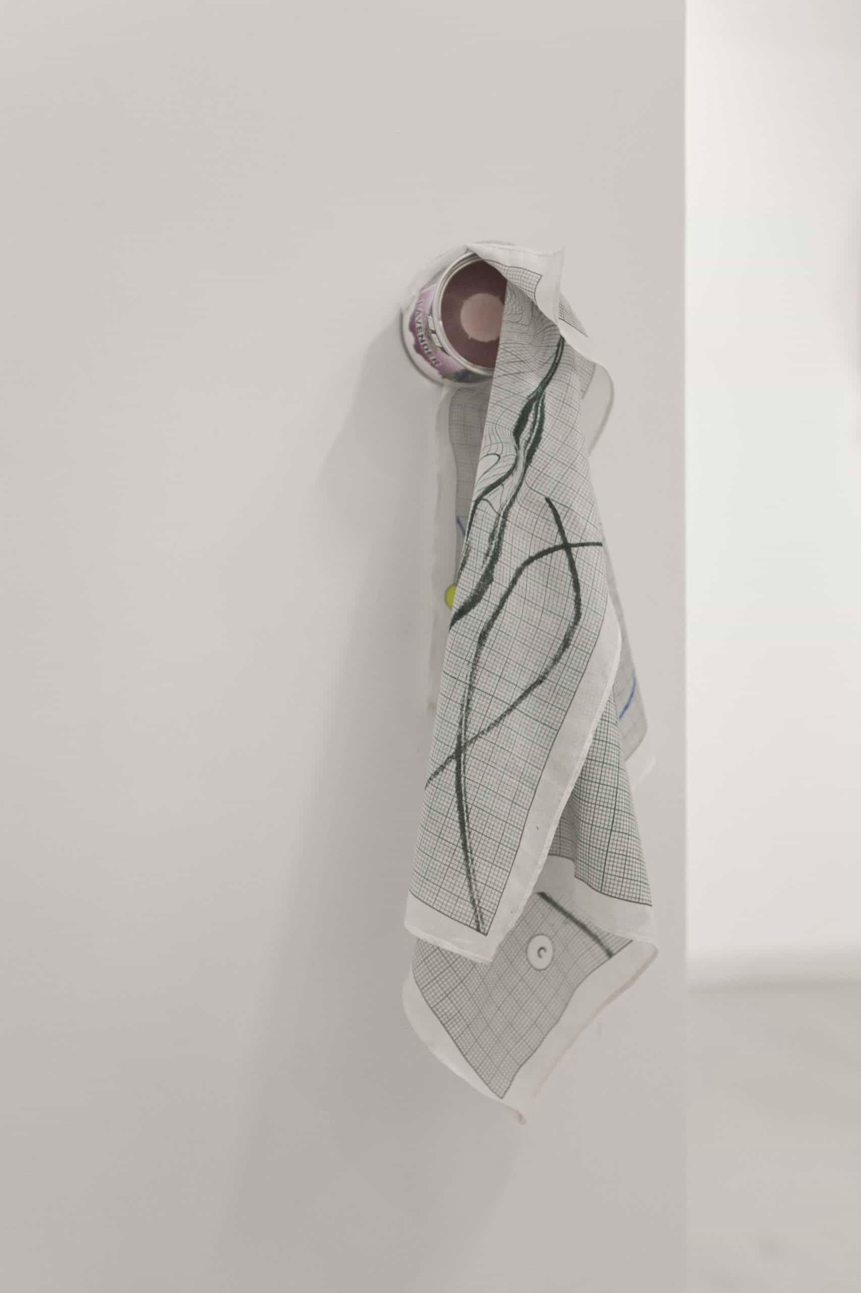 除了視覺語彙之外,嗅覺更是展覽中一個不顯眼卻重要的元素。藝術家選取了常見的固體芳香劑作為一個暗喻的對象,其廉價的形象與氣味卻也精準標誌了某些共同經驗,其座標可能位於旅途中不得不的暫停,或是公共空間中赤裸的私密片刻。而味覺這看不見的存在,也同時回應至標題,以氣味填滿與探索空間的形狀。